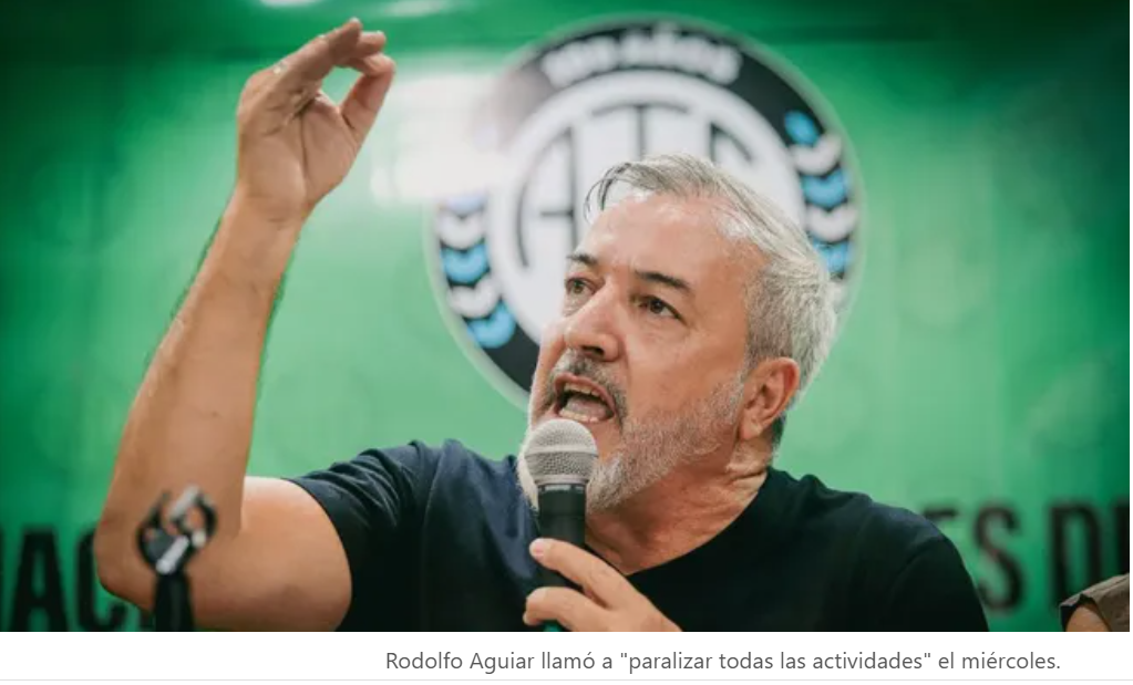 El secretario general de la Asociación de Trabajadores del Estado (ATE), Rodolfo Aguiar, lanzó este lunes un desafío a la Confederación General del Trabajo (CGT) y llamó a “parar igual” contra la reforma laboral. “Tenemos que paralizar todas las actividades para este miércoles impedir los sobornos en el Senado y ponerle fin a la especulación de los gobernadores”, indicó.