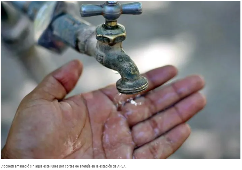 Cipolletti arrancó el lunes con problemas en la provisión de agua potable debido a un nuevo corte de energía eléctrica que afecta a la planta de captación ubicada en el paraje Lalor. La falla impide abastecer la potabilizadora y bombear a la red. No hay bombeo de agua por lo que cada usuario depende de sus tanques cisterna.