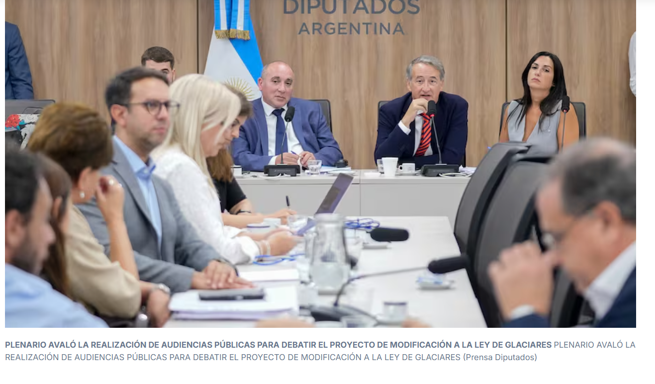 La Cámara de Diputados oficializó ayer la convocatoria a la audiencia pública que impuso la oposición para recibir opiniones sobre el proyecto que modifica la Ley 26.639 de protección de glaciares y ambiente periglacial, que ya tuvo media sanción del Senado casi sin debate. La audiencia, se realizará los días 25 y 26 de marzo y la inscripción estará abierta hasta el 20 de este mes. Desde el kirchnerismo alientan a que se sumen disertantes de todas las provincias –no solo de las provincias mineras que respaldan la propuesta de la Casa Rosada–, para que el debate sea lo más federal posible ante una iniciativa que podría poner en riesgo los recursos hídricos de gran parte del país.