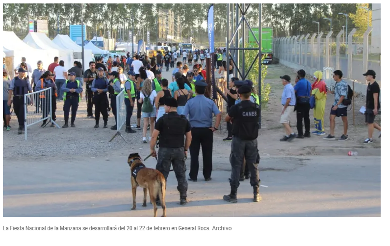 Con la expectativa de convocar a miles de vecinos y turistas durante tres jornadas consecutivas, la Policía de Río Negro desplegará un operativo integral de seguridad para la Fiesta Nacional de la Manzana 2026, que se desarrollará desde este viernes 20 hasta el domingo 22 de febrero en General Roca. El dispositivo incluirá controles estrictos en los accesos al predio, presencia reforzada dentro del evento y operativos viales en rutas.