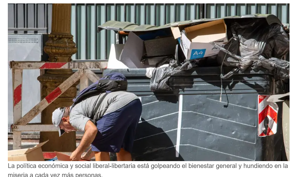 La política económica y social liberal-libertaria, en realidad, está golpeando el bienestar general y hundiendo en la miseria a cada vez más personas.