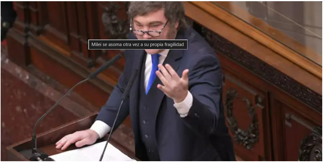 Pero el principal enemigo de Milei en el terreno local no está ni en el poder económico ni en la oposición política: sigue siendo el abismo que separa sus gritos de la realidad. Aunque dice que es el presidente de casi 48 millones de argentinos, en casi dos horas de discurso, Milei volvió a demostrar que no tiene en cuenta a la sociedad que gobierna. La única alusión a la sociedad civil fue una sentencia incomprobable: la malaria se terminó, una afirmación que está más ligada a la fortaleza política que recuperó después de las elecciones que a las mejoras concretas.