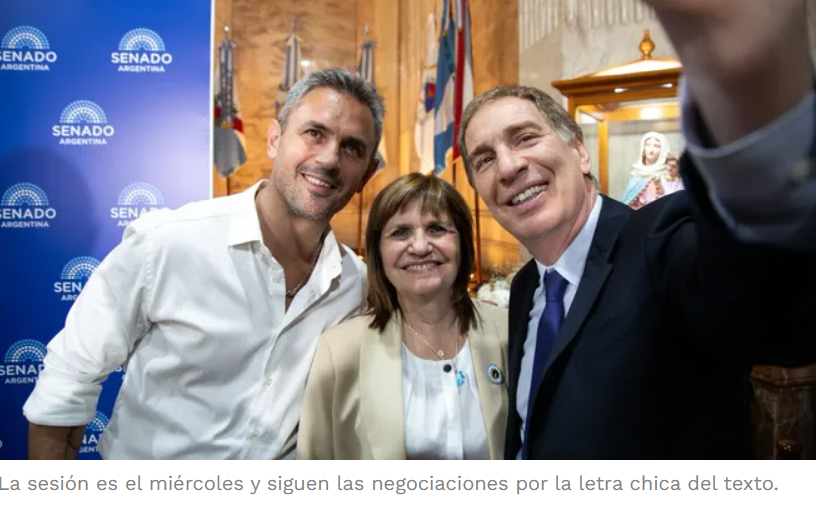 Como fuere, este lunes por la tarde, Bullrich se volverá a reunir con representantes de los sectores aliados en el Senado. Sus intenciones son tener el texto “cocinado” el martes por la tarde, es decir, un día antes de la sesión.