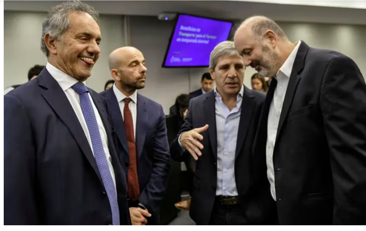 Si se observa la foto que encabeza esta nota se verá que Scioli saca la lengua. En realidad le está sacando la lengua al país. De ahí la creencia de que la cara es el espejo del alma. Rodeado de “tiburones”, esa lengua excitada pronostica un futuro prometedor. Nos viene a decir que “boludo” el último, y que aquí cada uno va por lo suyo. Caputo y Sturzenegger adiestrando al nuevo cachorro.