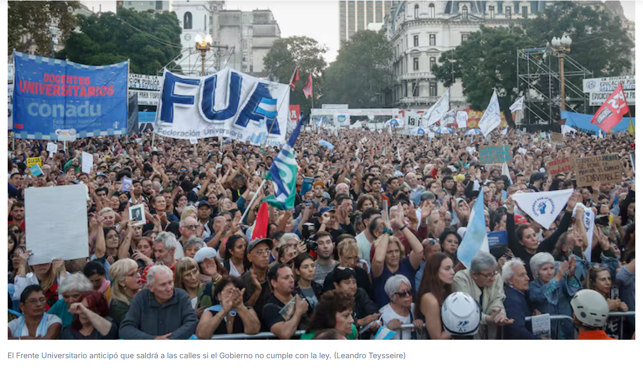 Otra vez la Justicia le marcó la cancha a Javier Milei ante sus intentos de desoír la voluntad del Congreso. Así como pasó con la ley de Emergencia en Discapacidad, ahora la Cámara en lo Contencioso Administrativo Federal confirmó una cautelar que ordenaba al Gobierno a cumplir con la Ley de Financiamiento Universitario y calificó como “pocos serios” algunos de los argumentos libertarios para no aplicarla. Todos los sectores del Frente Universitario celebraron el fallo y le pidieron a la Casa Rosada que “cumpla inmediatamente” con la recomposición salarial y que actualice las becas de los estudiantes como sostienen el fallo. Los jueces dijeron que está en riesgo “el derecho a enseñar y aprender” y advirtieron sobre las consecuencias negativas de ir a la Corte Suprema sobre puntos específicos.
