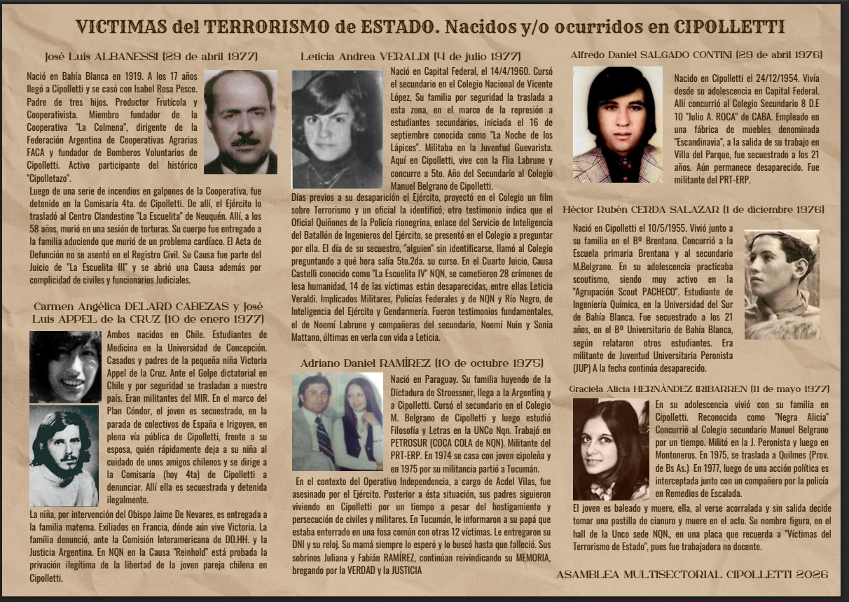 ASAMBLEA MULTISECTORIAL CIPOLLETTI 2026 Navegación de entradas El Gobierno avanza en silencio con cambios en la ex ESMA Neuquén: La Universidad del Comahue y el INTA preparan una maestría en cannabis medicinal